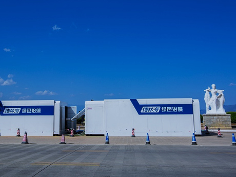 采用高效可調式渦井取藻、藍藻囊團破壁、一體化二級強化氣浮等核心技術,岸上站點藻水分離系統集成了藍藻打撈、脫氣沉降、氣浮分離、脫水等多個環節的技術和設備,形成了可規模化和工廠化處理藍藻的基站。適用于藍藻水華長期規律性、大范圍聚集區域的常態化應急處置。