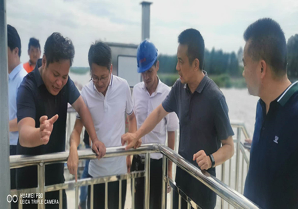2020年7月31日,宜興市副市長(zhǎng)周峰攜同宜興市水利局、公用產(chǎn)業(yè)集團(tuán)相關(guān)領(lǐng)導(dǎo)及人員視察符渡港深井項(xiàng)目。周副市長(zhǎng)對(duì)我司的符渡港項(xiàng)目建設(shè)工作給予了充分肯定,贊揚(yáng)道:“上市公司工作效率高、工程形象好”,并表明希望此工程在今后能發(fā)揮最大效用,減少周邊藍(lán)藻聚集現(xiàn)象的發(fā)生。