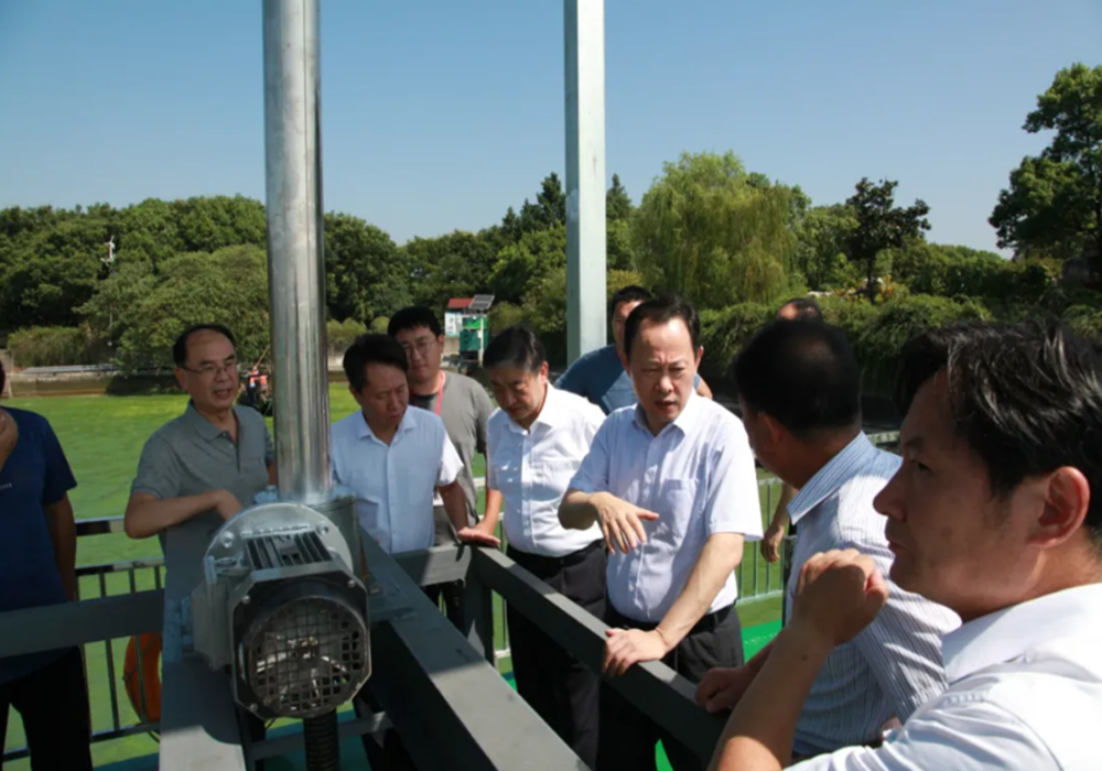 2020年8月18日,市政協(xié)主席周敏煒視察我司太湖藍藻治理工作情況,市政協(xié)秘書長王鴻涌參加調(diào)研。局領(lǐng)導(dǎo)張海泉、鄒永明、蘭秀凱陪同調(diào)研