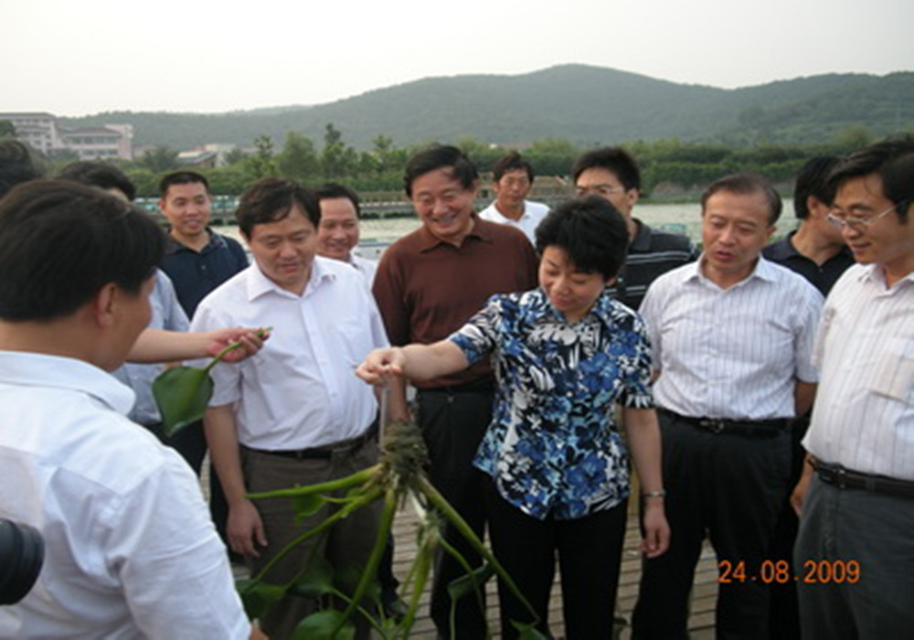 2009年8月24日,省委常委、副省長黃莉新來到無錫市楊灣藻水分離站,省水利廳副廳長陸桂華陪同檢查。無錫市水利局負責同志、廳水資源處負責同志陪同檢查。實地檢查藻水分離工程運行,并聽取有關情況匯報。 據(jù)介紹,當前是太湖藍藻打撈的關鍵時期,僅無錫市每天打撈量就超過一萬噸。 黃莉新充分肯定當前藍藻打撈、處理所取得的成績,認為藍藻打撈、處理實現(xiàn)了專業(yè)化、機械化、資源化。她叮囑工作人員要進一步加強運行管理,實現(xiàn)資源最大化利用。