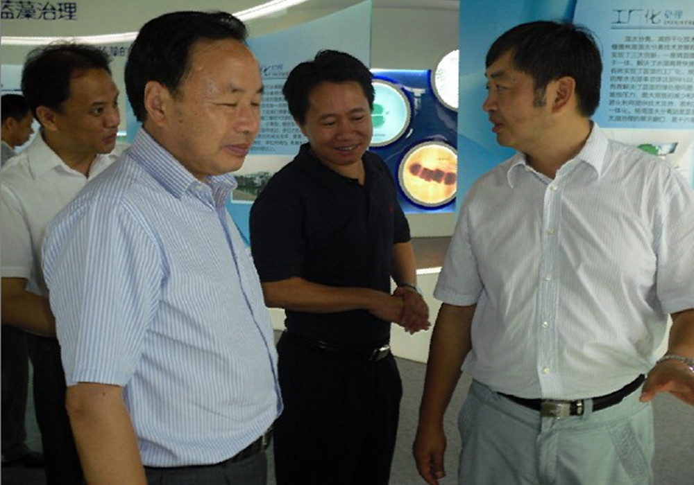 市領導一行在楊灣藻水分離站,信息中心的大屏幕上各藍藻打撈點、貢湖水廠等情況一目了然,姚建華詢問、觀看了藻水分離全過程,當得知物聯網技術已應用到藍藻治理,他高興地說,“科學治太功在當代、利在千秋!”