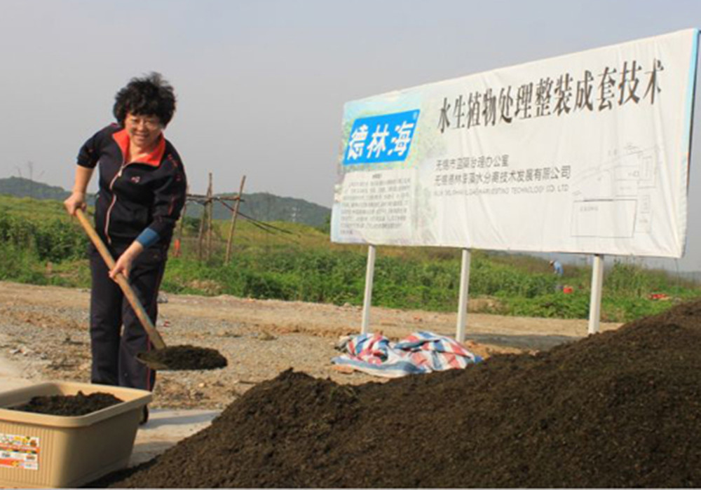 無(wú)錫太湖梅梁灣水草處理基地位于漁港藻水分離站鄰側(cè),占地約1200m2,由無(wú)錫德林海公司投資、研發(fā)和建設(shè)。德林海公司研發(fā)的水生植物處理整裝成套技術(shù)能將水草、水葫蘆、水花生等水生植物由水分大于95%的鮮草狀態(tài)處理成水分小于65%的固態(tài)渣狀,從而便于實(shí)現(xiàn)無(wú)害化處置和資源化利用。水生植物處理能力每天300噸。