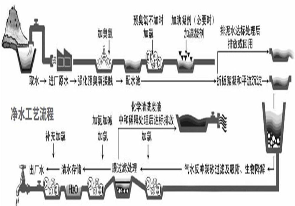 上圖是目前國(guó)內(nèi)自來(lái)水從取水到出水經(jīng)的整個(gè)一個(gè)經(jīng)過(guò)流程。照理講,如此完善的水處理體系在國(guó)內(nèi)應(yīng)該不會(huì)存在自來(lái)水再污染的情況或體系中無(wú)法處理的情況,雖然說(shuō)病毒無(wú)法完全消滅,但是異味應(yīng)已實(shí)現(xiàn)過(guò)濾了。但是實(shí)則不然。