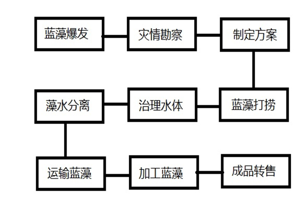那么普遍的處理的方法基本都是掩埋處理,很少能做到循環利用,因為其加工復雜,成本高,掩埋的話可以降低很多成本。德林海公司貫徹了綠色環保的理念,在藍藻治理方面著重于有效的利用。所以要一次搞定的話只有從打撈,降礦物質,清除毒素,重新恢復水生態的方向著手。很多環保企業在對湖泊治理后一次第二年或者更早就又出現了新的問題。基本問題都出在了缺少重新恢復水生態這個情況。有人認為從藥物入手治理即可一勞永逸但是很明顯這個想法是錯誤的,藻類本身是微生物,他們的歷史比人類早遠。所以想要和它們和平共處我們只有1個選擇,就是還給他們原本的生態,恢復生態的循環。無錫德林海公司對藍藻治理工作集于一體化進行實施。在打撈船打撈藍藻的同時使用水體高效增氧船配合湖庫寶對水體進行凈化和提供水體中的溶解氧濃度,增加生態恢復能力。將藻類集中處理利用德林海高效水藻分離機和藻泥一體化二級干化機最后使用藻粉制備生產器將我藍藻從打撈到加工處理一體化實施——詳見《德林海制藻產品》。以下是大體治理流程:
