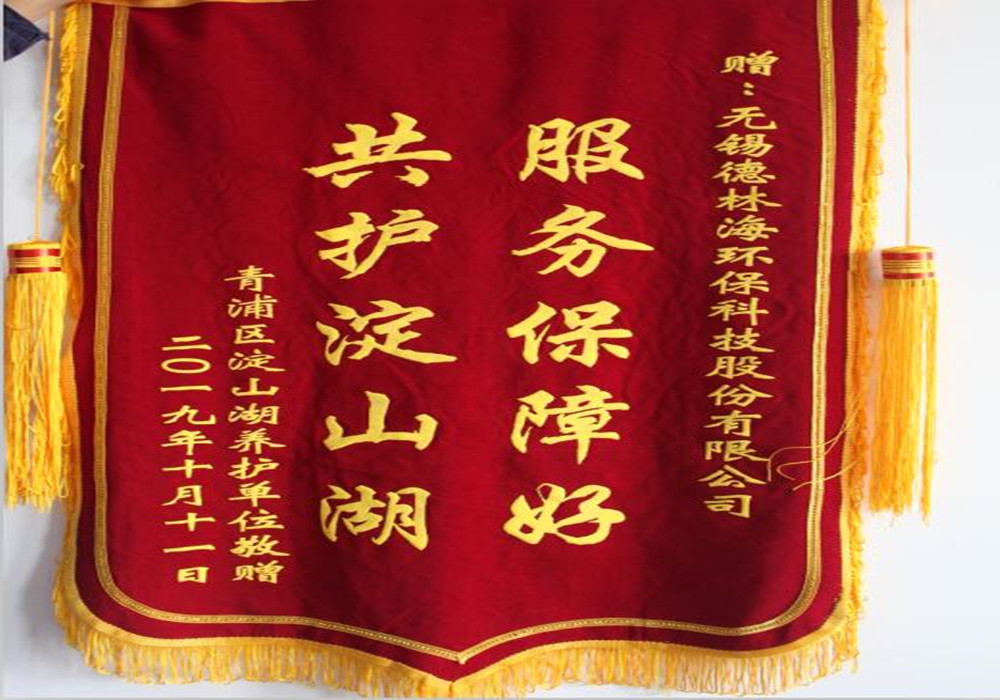 2019年夏天,我司應(yīng)上海市青浦區(qū)淀山湖養(yǎng)護單位的邀請,組織人員前往上海淀山湖藍藻進行藍藻應(yīng)急治理工作,現(xiàn)工作順利完成,淀山湖養(yǎng)護單位特送來錦旗。