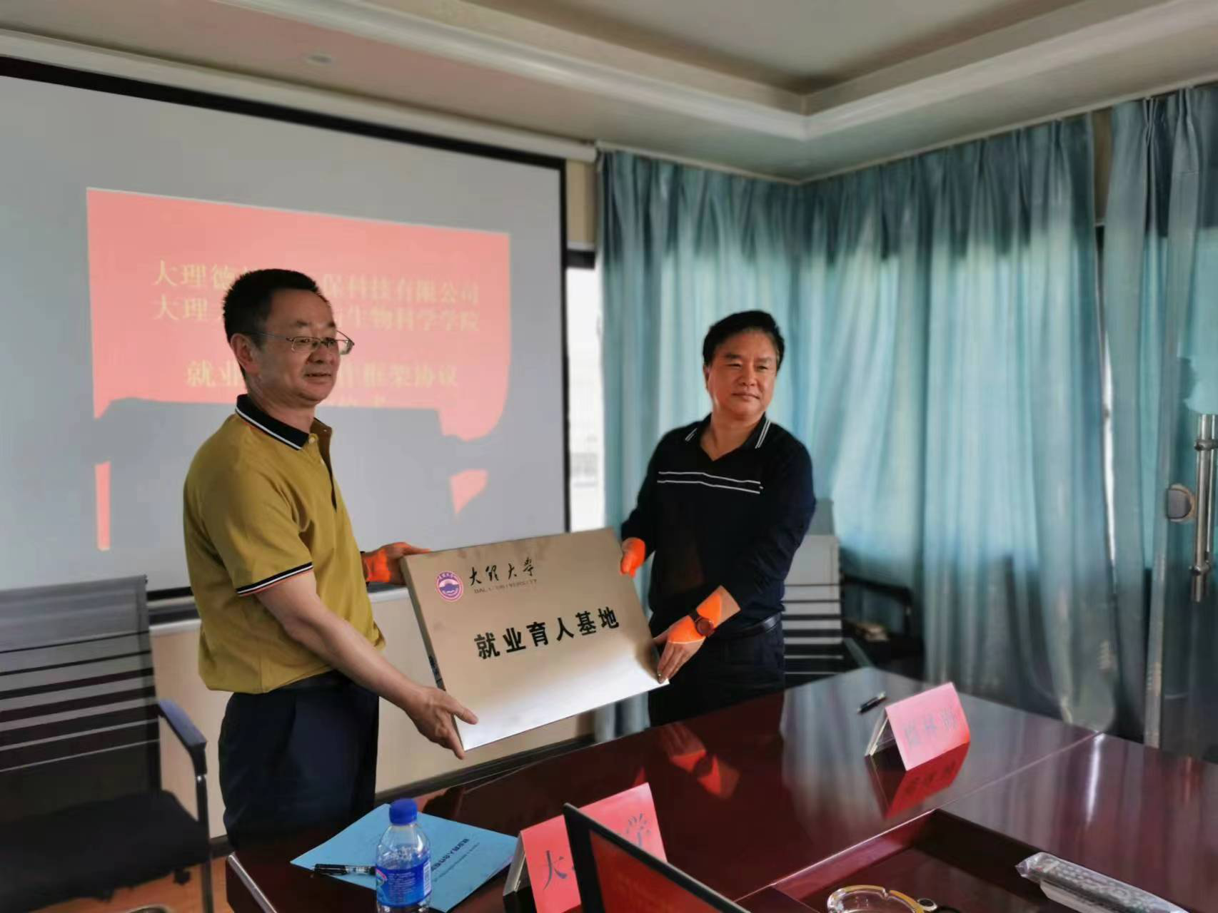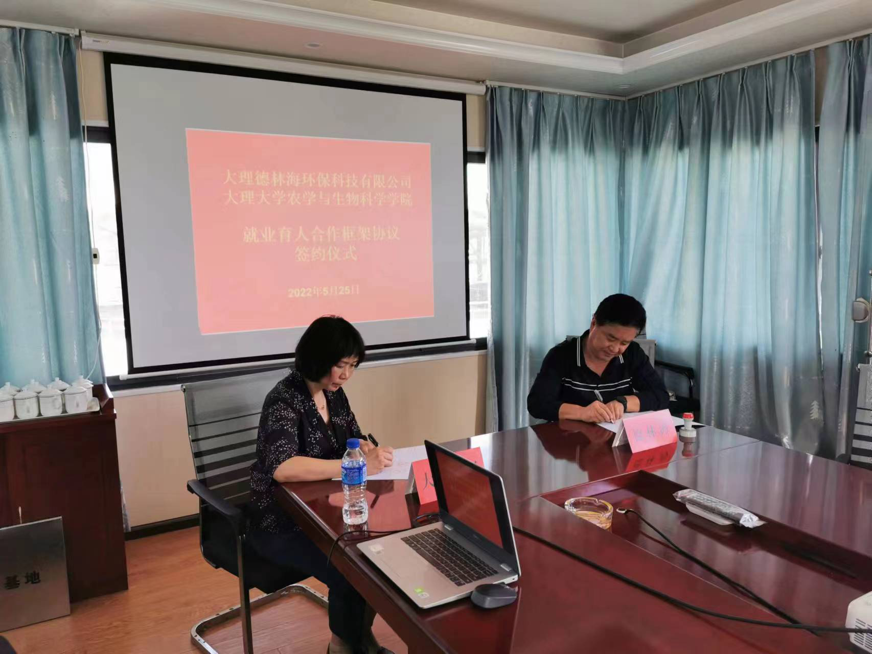 2022年5月25日下午,大理大學與大理德林海的就業育人合作框架協議簽約授牌儀式在洱海挖色藻水分離站舉行。大理大學副校長段利華、大理大學農學與生物科學學院黨委書記馬志敏、大理德林海環??萍加邢薰究偨浝眈R利恒及總經理助理陳雄峰等領導出席簽約授牌儀式。此外,本次簽約授牌儀式還邀請到大理洱海保護投資建設有限責任公司副總經理廖婧璇參加。