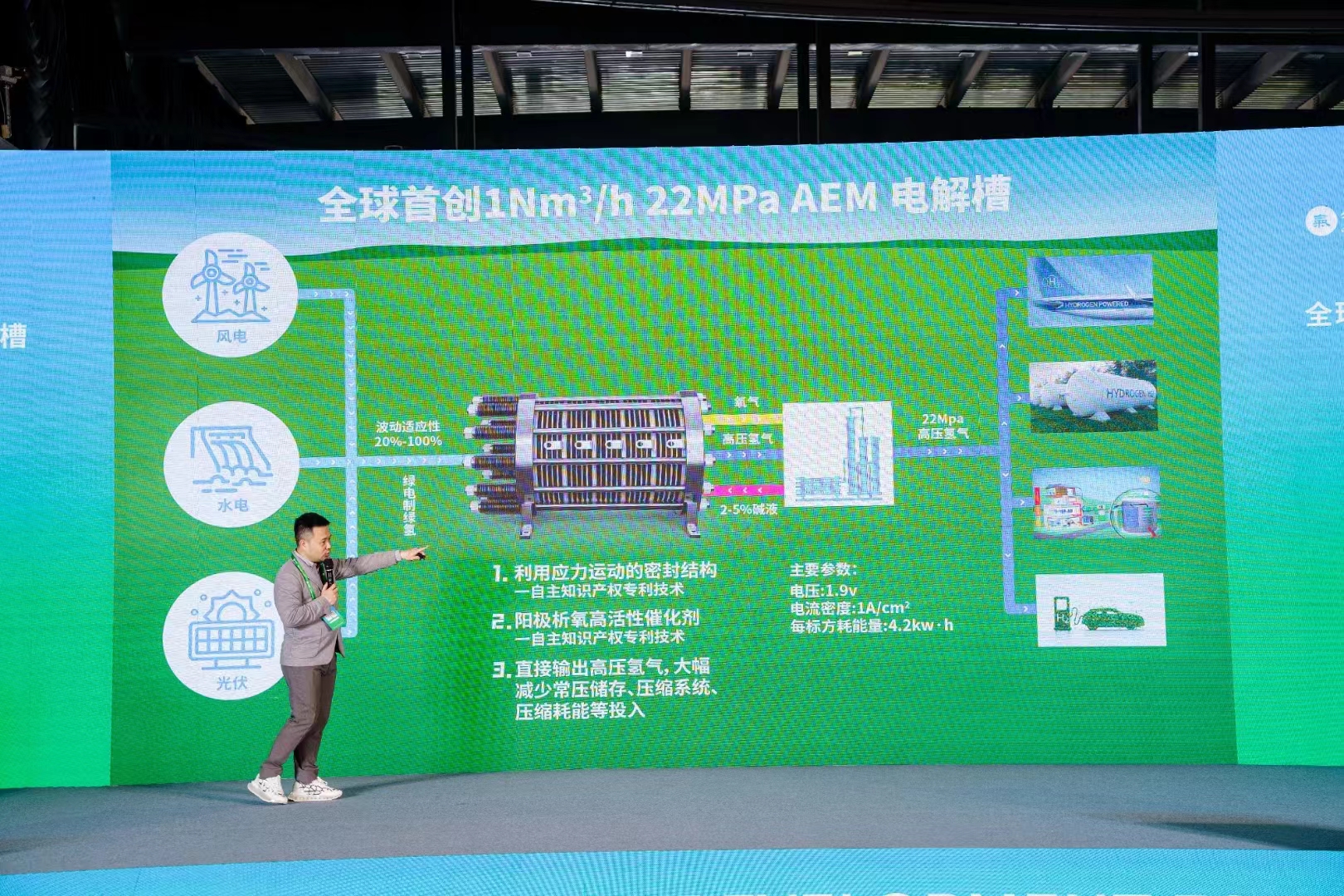 無錫德林海零碳科技有限公司(德林海零碳)于2024年4月18日在“2024中國 (無錫) 國際氣體工業博覽會暨第九屆國際氣體產業大會”發布了重要研究成果——“全球首創1Nm3/h 22MPa AEM電解槽”。德林海零碳公司總經理洪駿向參會的業內專家及現場觀眾做成果發布宣講,該成果一經發布,立即引發高度關注。