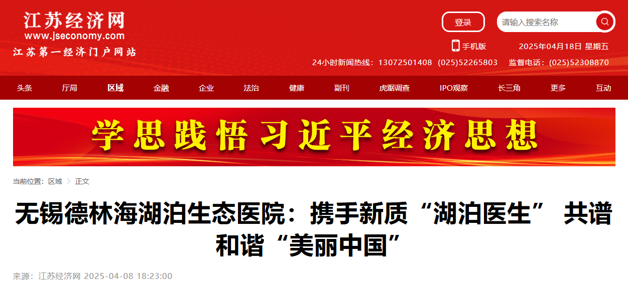江蘇經(jīng)濟(jì)網(wǎng):無錫德林海湖泊生態(tài)醫(yī)院:攜手新質(zhì)“湖泊醫(yī)生” 共譜和諧“美麗中國”