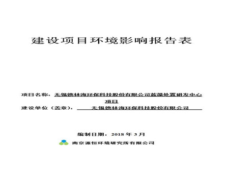 無錫德林海環保科技股份有限公司藍藻處置研發中心項目