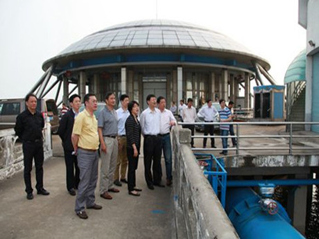 2015年5月14日上午10點,泰州市水利局副局長田波、水資源處副主任王玉忠一行視察楊灣藻水分離站。