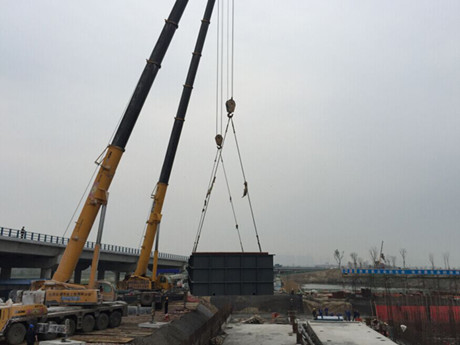 (2015年1月21日)無錫萬象城開業了,開發商在環萬象城挖了一條環城河道,因為河水不流通,時間一長就發黑發臭,為此萬象城向我公司購置了最新研制的黑臭河道水體快速凈化設備(即清水車)。